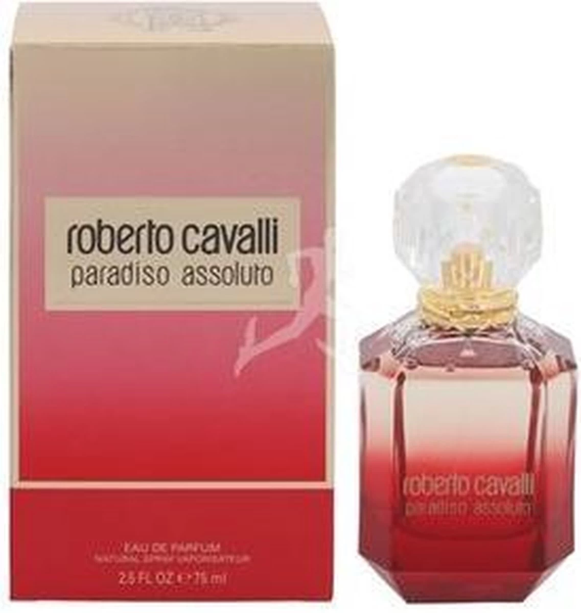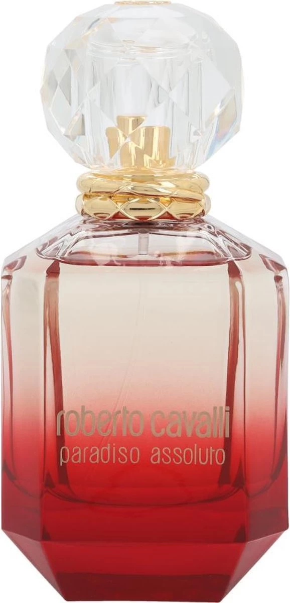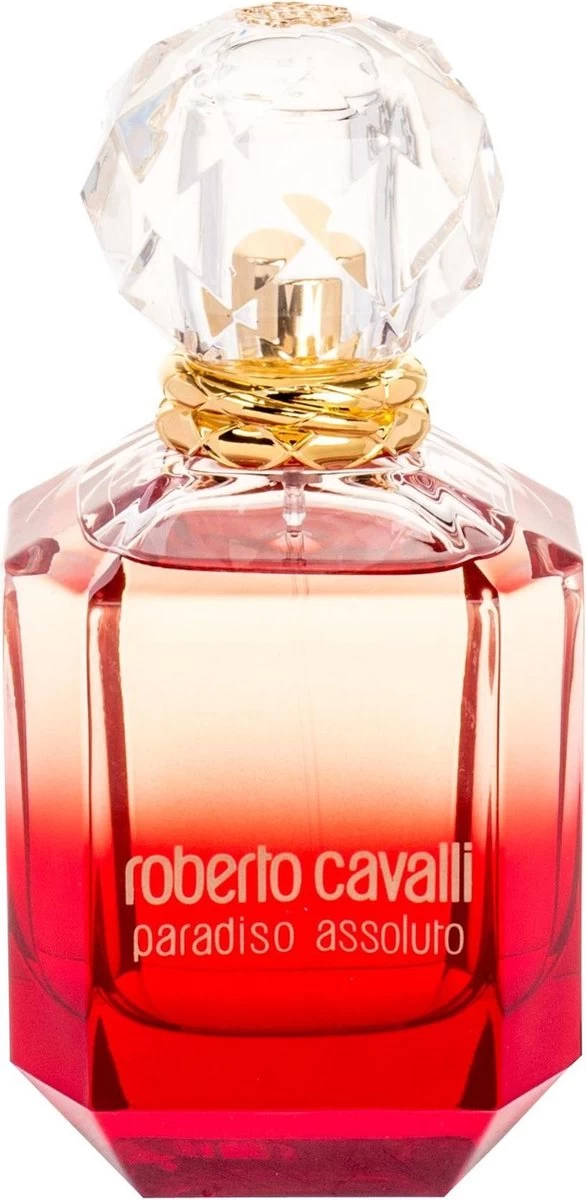 Roberto Cavalli – Paradiso Assoluto – Eau De Parfum – 75ML. Roberto Cavalli Paradiso Assoluto is een eerbetoon aan verlangen en zinnelijkheid, staat volledig voor de hedonistische levensopvatting dat u het paradijs hier en nu moet en kunt vinden. De intrigerende opening van de geur combineert frisse en sexy topnoten van roze peperkorrel met zoete en verlokkende wisteria. Deze slim contrasterende prelude introduceert Paradiso’s signatuurnoot, wilde jasmijn, gefacetteerd met een contrapunt van vibrerend zinnelijke rode lelie.