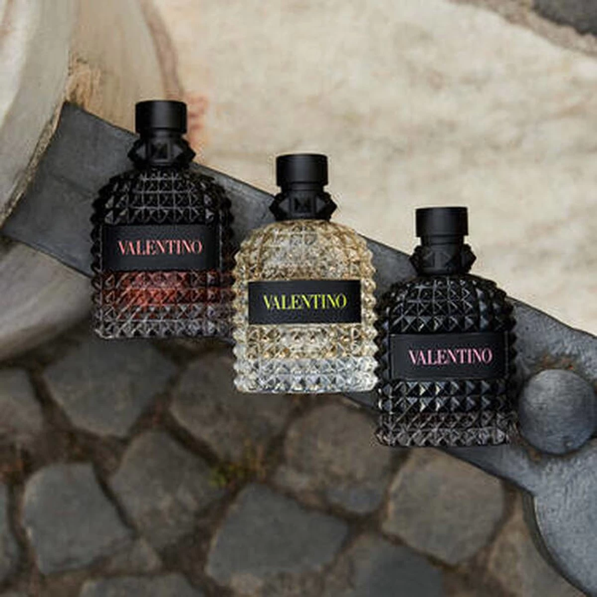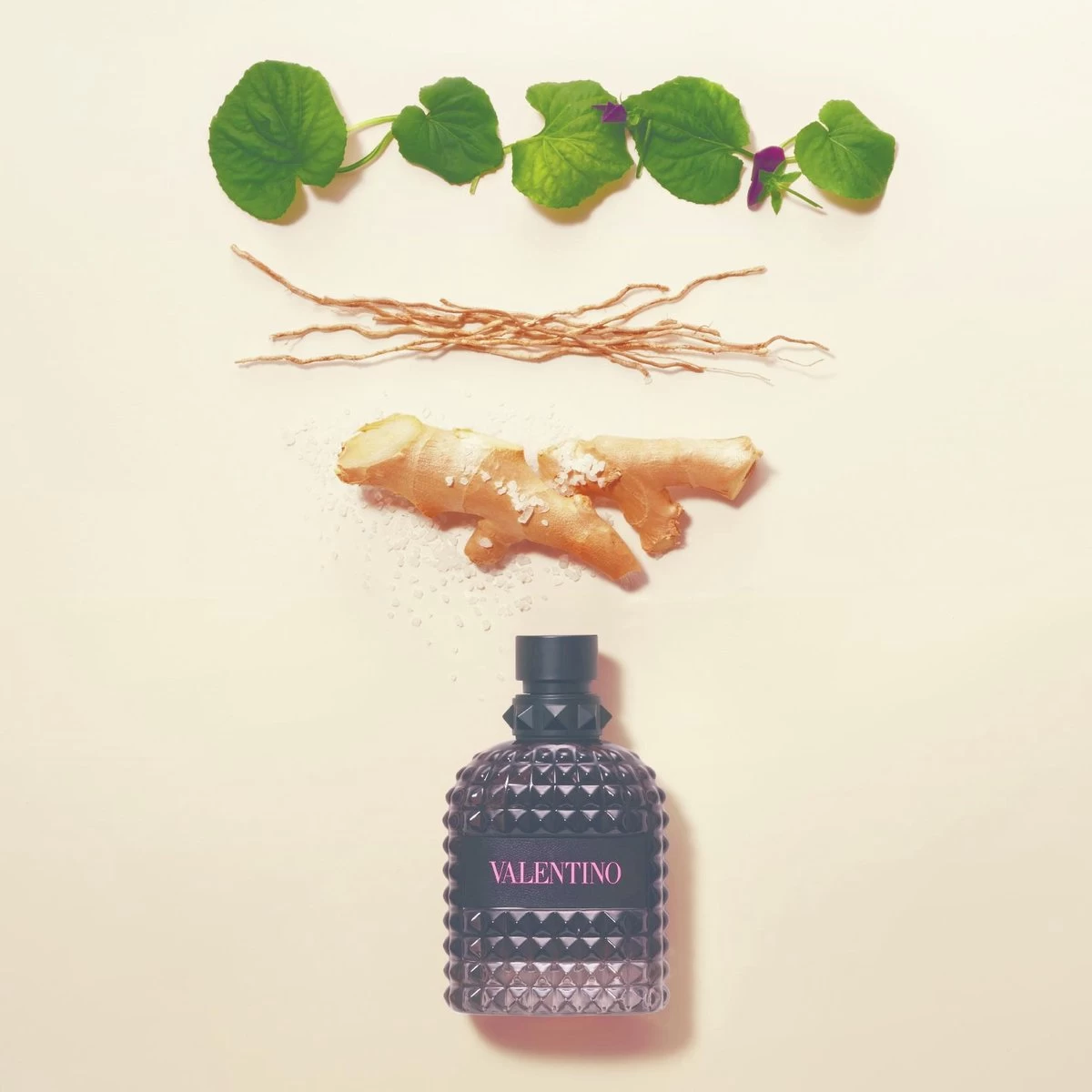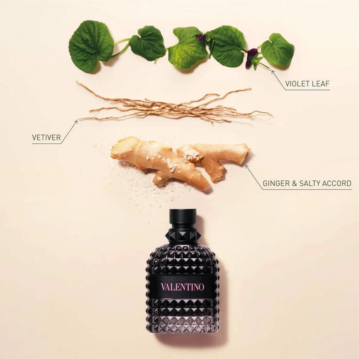 Titel: EDT – Uomo Born in Roma. Uomo Born in Roma Eau de Toilette is een moderne, aromatische, houtachtige geur. Viool, salie en gerookte vetiver getuigen van de couture-signatuur van Valentino, verkwikt door de vibrerende frisheid van het zout akkoord en het pittige van de kruidige gember.